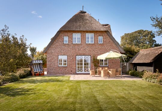Kommen Sie ins Haus Auswanderer. Die schöne Reetdachhaushälfte wurde liebevoll und geschmackvoll eingerichtet. Sie werden Ihren Urlaub in vollen Zügen genießen. Ob Frühstück auf der Terrasse oder Relaxstunden in der Sauna - hier steht Erholung "pur" auf dem Programm. Das Doppelhaus befindet sich in ruhiger Lage von Nieblum. Das historische Friesendorf gilt seit langem als eines der schönsten Dörfer in ganz Norddeutschland. Die alten Kapitänshäuser in der direkten Nachbarschaft, gute Einkaufsmöglichkeiten, nur 800 Meter Entfernung zum Strand und urige Kneipen machen Haus Auswanderer während des ganzen Jahres zu einem unvergesslichen Urlaubsdomizil. Herrlich, einmal in einem echten Dorf mit Kirche und "Meere" (Ententeich) leben zu können.