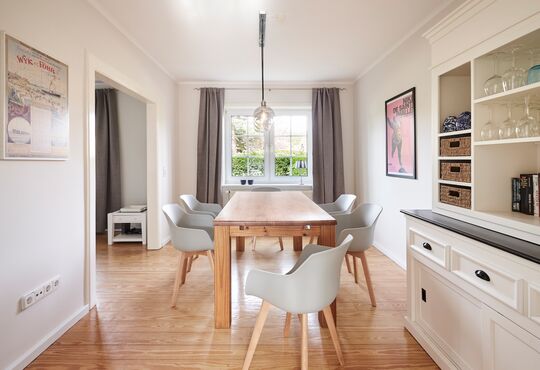 Das Haus liegt auf der Carolinenhöhe, dem höchsten Punkt der Insel. Viel merkt man von dieser Höhe jedoch nicht, aber vielleicht ließ sich der wunderschöne, abgeschlossene Garten deshalb so herrlich anlegen. Hier können Ihre Kinder so richtig toben und spielen. Sie haben dabei trotzdem ausreichend Platz, um in Ruhe ein Buch im Strandkorb oder auf der Rolliege zu lesen. In direkter Nachbarschaft liegt der alteingewachsene Garten des Friesenmuseums. Im Inneren erwartet Sie ein gemütliches Zuhause für die ganze Familie. Außerdem sind Sie in nur wenigen Gehminuten am Strand und in der kleinen Innenstadt von Wyk. Herzlich Willkommen.