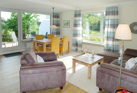 Zwischen dem Wyker Südstrand und Nieblum steht das beliebte Terrassenhaus Halligblick. Die Lage ist wohl einmalig: direkt am Meer, mit Blick nach Süden in Richtung der Halligen in bester Umgebung. Ganz in der Nähe liegen der Golfplatz und der Sportflugplatz. Beide sind bequem zu Fuß zu erreichen. Von dort ist es nur ein Sprung nach Greveling, einer Gruppe von Reethäusern im Friesenstil. Nach Nieblum, einem der schönsten Orte Schleswig-Holsteins, ist es kaum weiter als zum Zentrum Wyks. Nicht ohne Grund gilt der Südstrand als Geheimtip. ++ Bitte beachten Sie: in der mittleren Hausscheibe – Am Flugplatz 1a – werden vom 09.03. – 31.03.2026 die Fenster ausgetauscht. Weitere Informationen teilen wir Ihnen gerne persönlich mit.