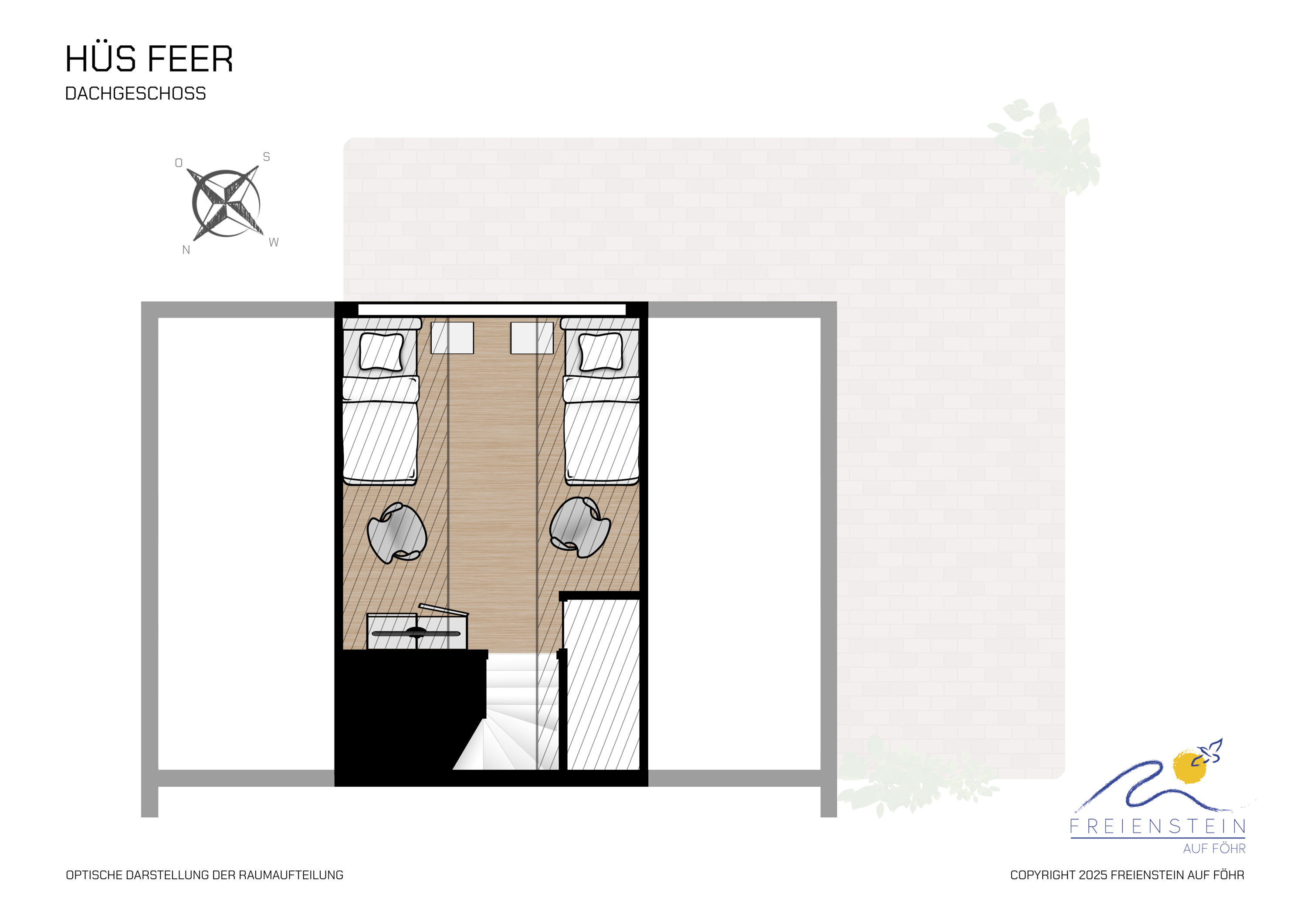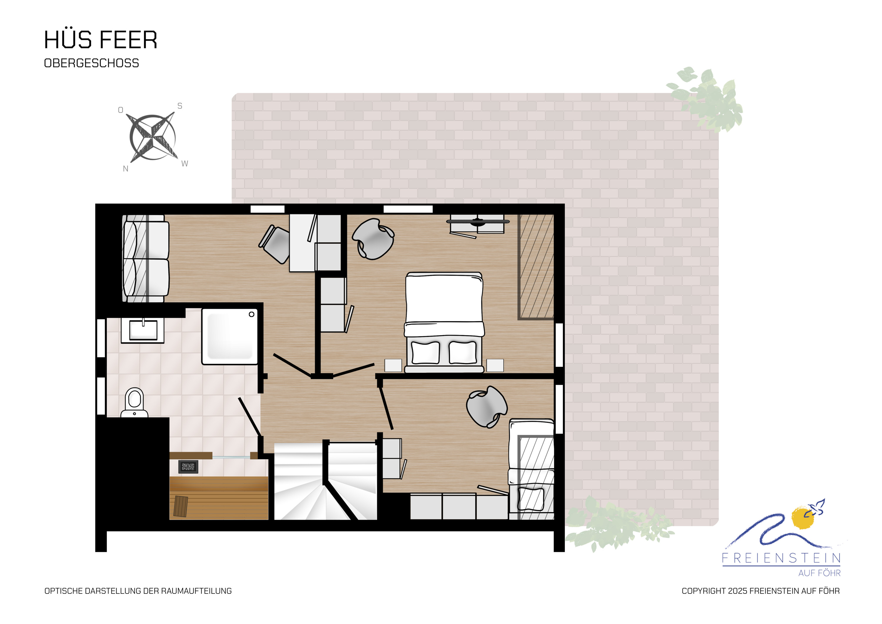 Ankommen, durchatmen und entspannen. Sie spüren sofort, dass unser Ferienhaus mit seiner komfortablen Möblierung und seinen lichtdurchfluteten Räumen ein besonderes Urlaubsparadies ist. Genießen Sie Ihren Urlaub im zeitlosen Charme unseres Ferienhauses. In einer ruhigen Seitenstraße gelegen, nur wenige Gehminuten vom herrlichen Sandstrand bzw. vom Dorfkern von Nieblum entfernt. Es verfügt über alle Einrichtungen, um Ihren Urlaub zu einem perfekten Erholungsurlaub werden zu lassen. Genießen Sie die ersten Sonnenstrahlen im Strandkorb auf der Terrasse oder lassen Sie sich an kalten Tagen in unserer Sauna erwärmen. Für große Feriengäste ist das Doppelzimmer im Obergeschoss mit 2,20 m langen Betten ausgestattet.