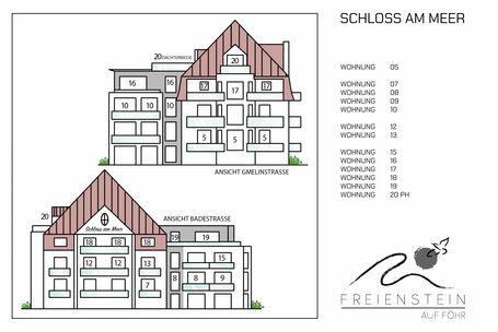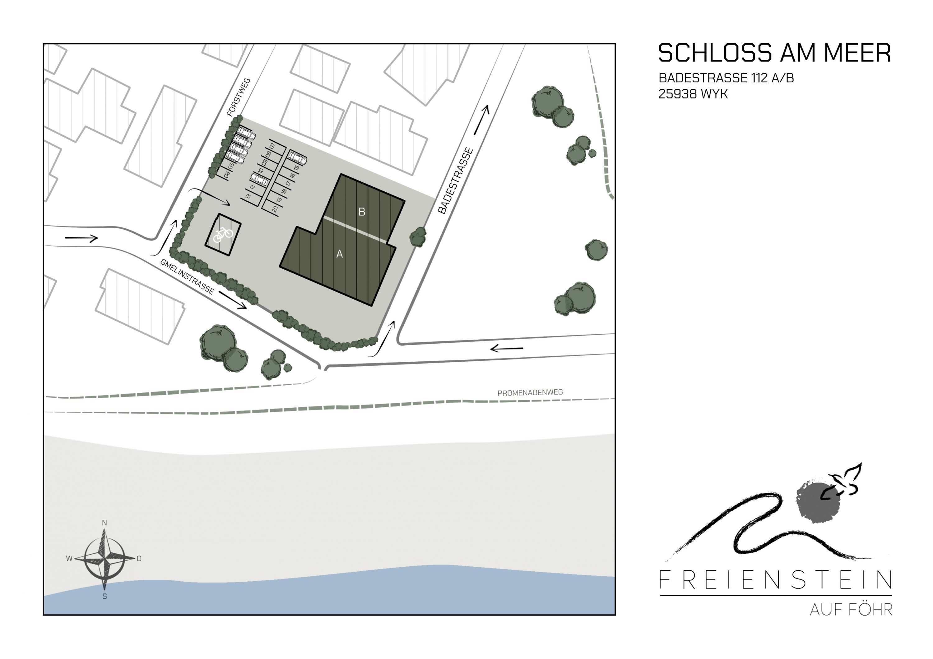 Wir begrüßen Sie im Schloß am Meer", der exklusiven Wohnanlage direkt am Wyker-Südstrand gelegen. Ihre Wohnung liegt im 3 Obergeschoss hinter der historischen Fassade, welche beim Neubau erhalten wurde. Hier haben Sie einen Balkon für sich allein und einen Blick auf die Nordsee und die Halligen. Dieser einzigartige Panoramablick ist unvergesslich. In nur wenigen Schritten befinden Sie sich auf der Promenade, die Sie ins Herz von Wyk führt. Hier laden Geschäfte zum Bummeln ein, Cafes und Restaurants verwöhnen Sie mit kulinarischen Köstlichkeiten."