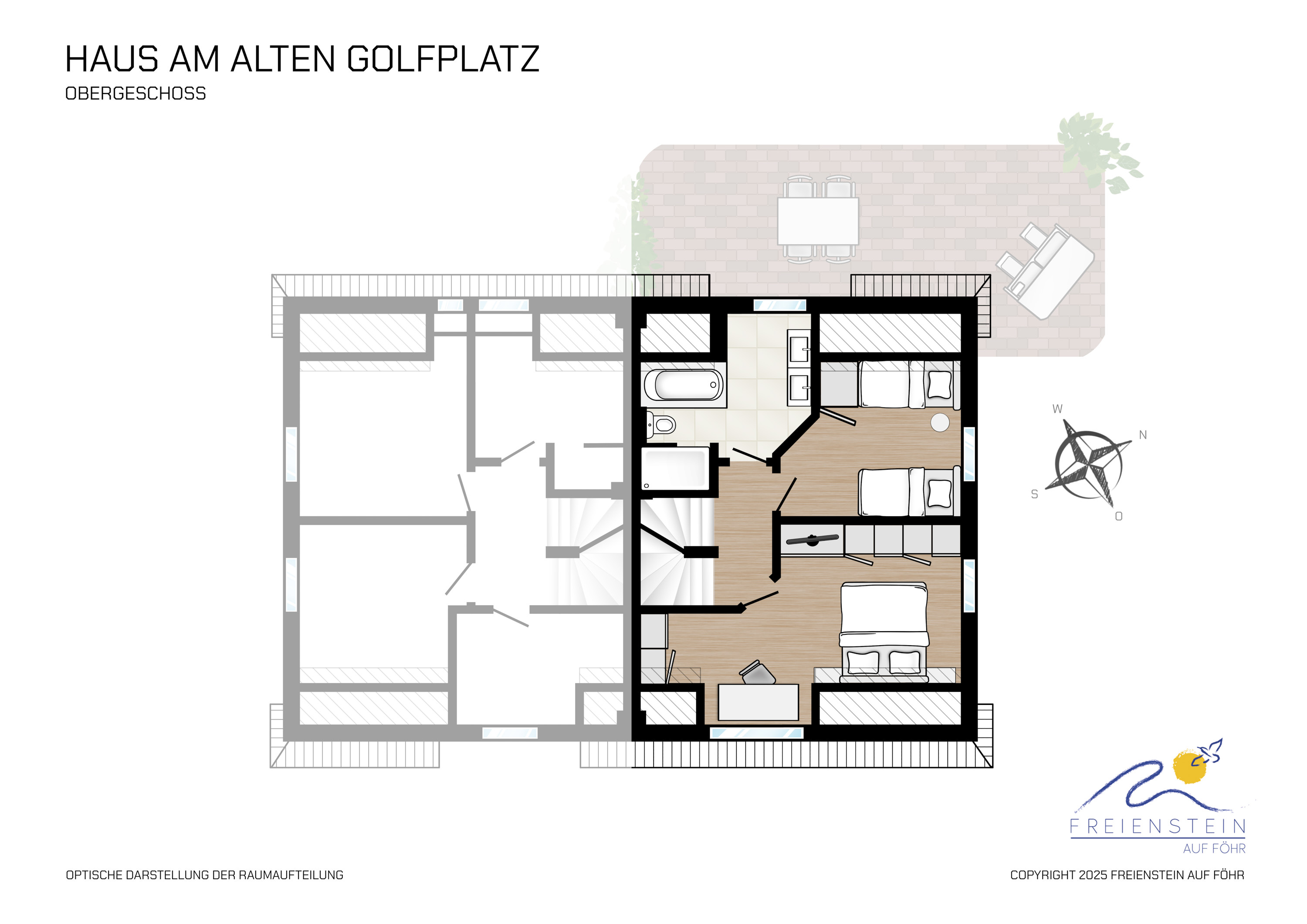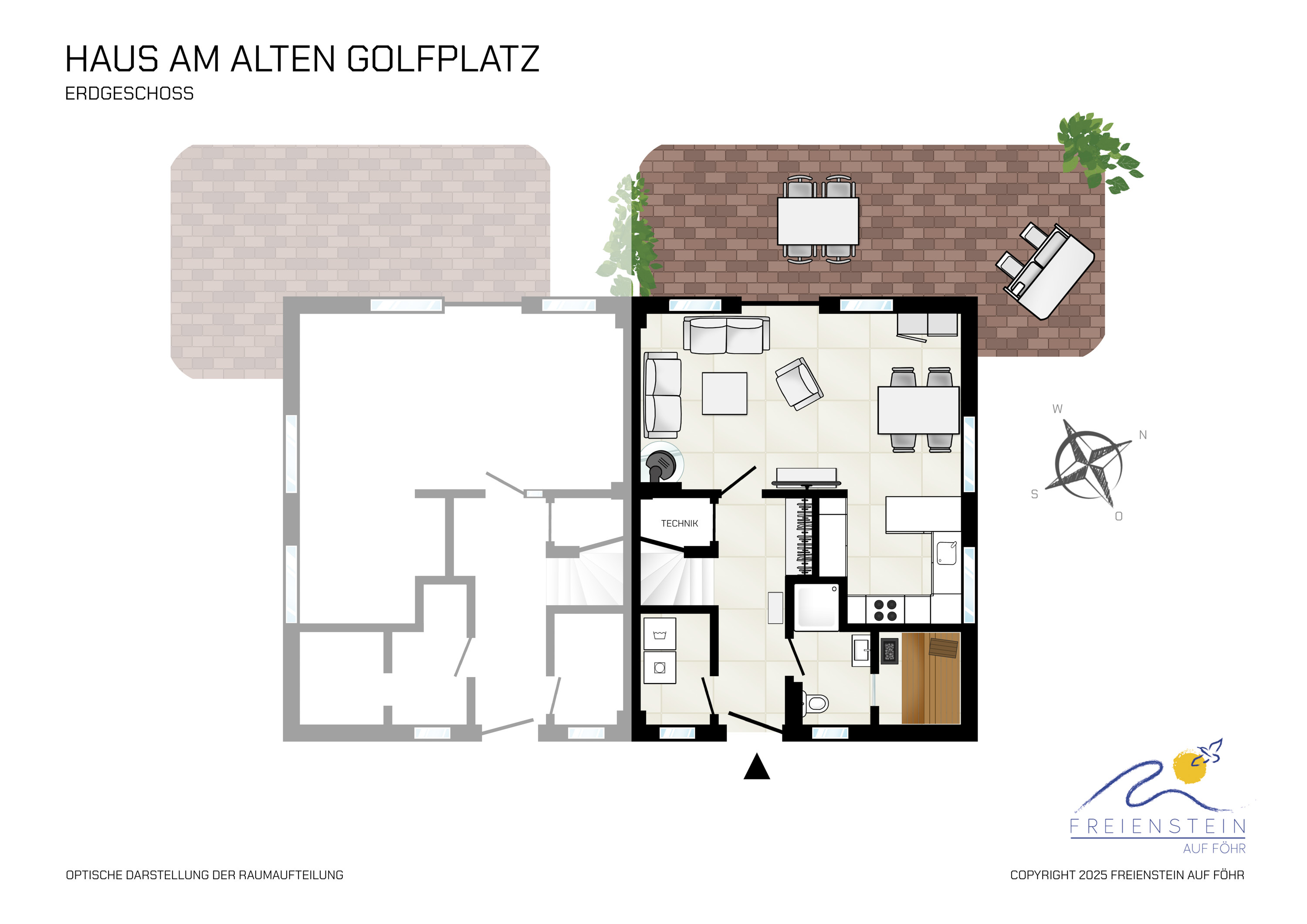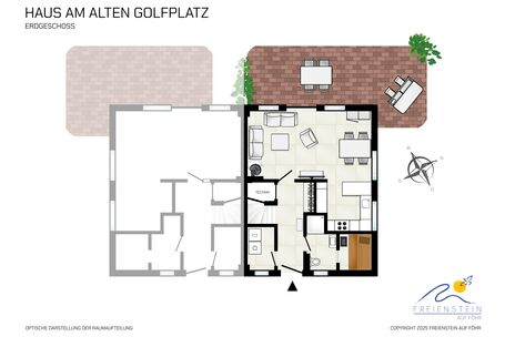 In unmittelbarer Nähe zum Wyker Südstrand, und in direkter Nachbarschaft zu den Flächen des alten Golfplatzes, auf dem Gelände des ehemaligen Kaiserhofes ist die Residenz am alten Golfplatz entstanden. Mit nur wenigen Schritten gelangen Sie zum Strand und zur Promenade, welche Sie ins Herz von Wyk führt. Die Innenstadt mit ihren Café,s, Restaurants sowie Einkaufsmöglichkeiten ist so schnell und bequem zu erreichen. Das Reetdachdoppelhaus wird mit einem traditionellen Friesenwall umgeben. Auch bei der Innenausstattung wurde an alles gedacht - von dem großzügigen Wohn-Essbereich mit antikem Kachelofen bis hin zur eigenen Sauna - hier genießen Sie die schönsten Tage des Jahres.
