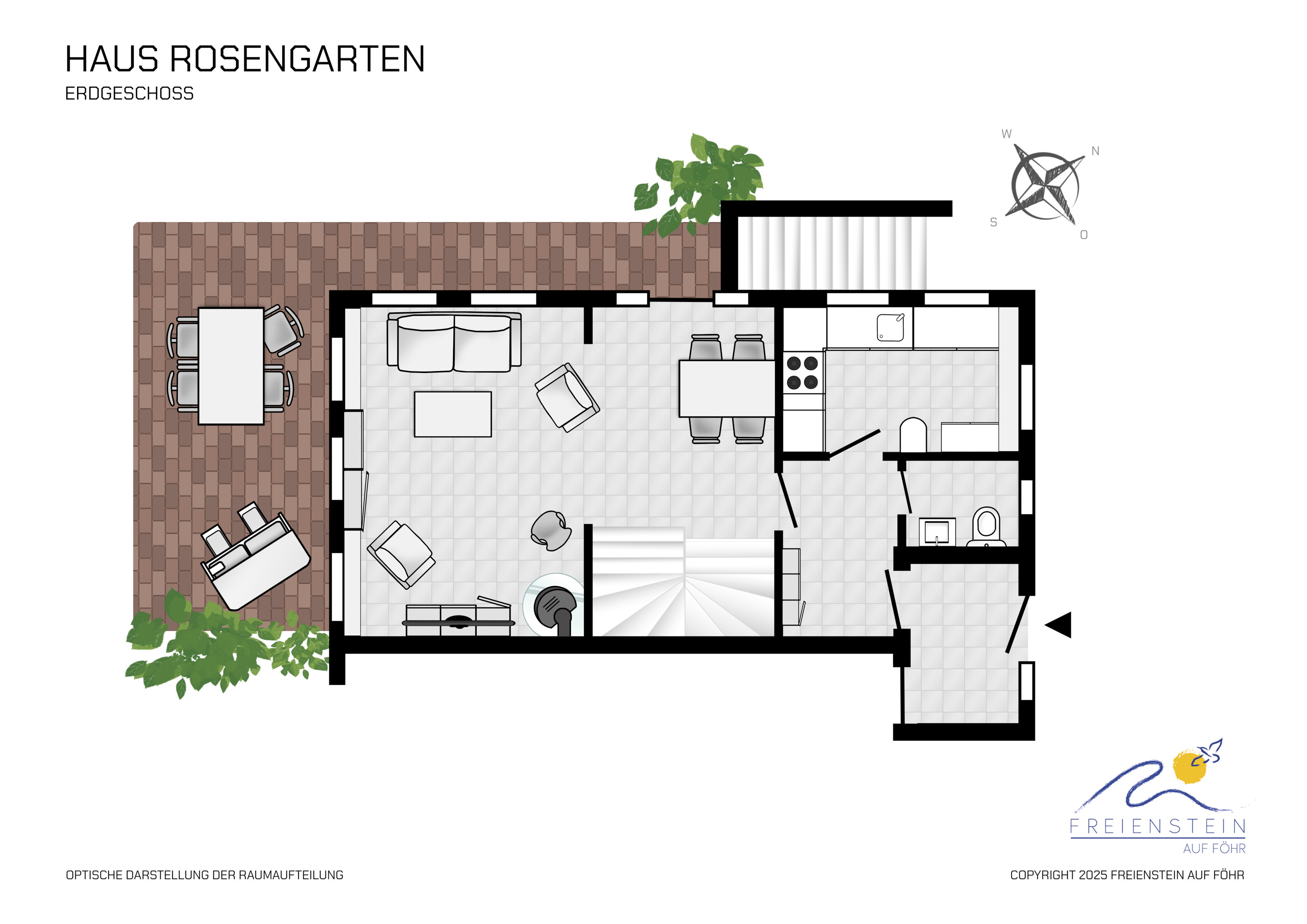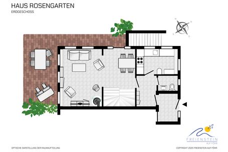 Willkommen im Haus Rosengarten Hier werden Sie die schönsten Wochen des Jahres vollauf genießen und das nicht nur im Sommer sondern zu jeder Jahreszeit! Die Doppelhaushälfte liegt am Rande des alten Kurparks und in nur 100 Meter Entfernung befindet sich schon das Meer. Spüren Sie die frische Nordseebrise und atmen tief durch. Im Sommer lädt der eigene Garten mit Strandkorb, Gartenmöbel und Liegen zum Relaxen ein und im Herbst oder Winter machen Sie im Wohnzimmer ein kuscheliges Feuer im Specksteinofen und danach gehts ab in die eigene Sauna. Sollten Sie den Wunsch nach ein wenig Trubel haben, gelangt in wenigen Gehminuten über die Strandpromenade nach Wyk. Hier laden Cafes, Restaurants, Boutiquen und Geschäfte Sie ein den Tag zu verbringen.