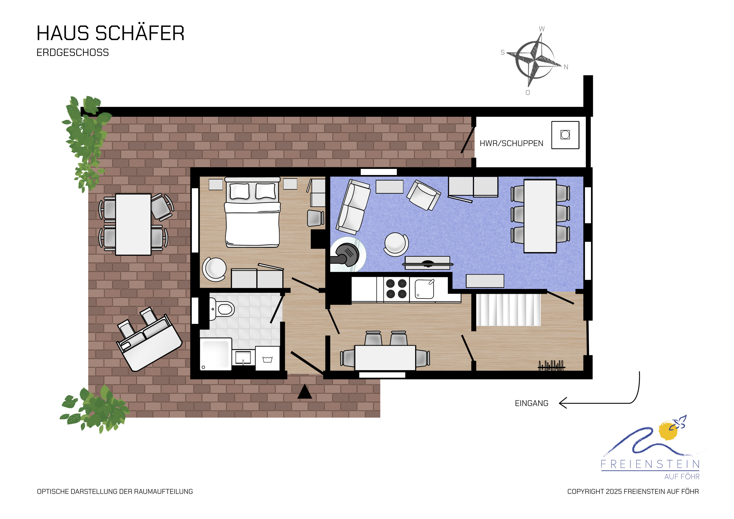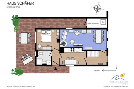 Die Sonne und das Grün des Gartens lassen die Fassade lächeln. Wir stehen vor einem zeitlosen Stadthaus mit ländlichem Charme, mitten im Herzen von Wyk, wo man immer wieder gerne nach Hause kommt. Hier werden Sie schon an der Schwelle mit offenen Armen empfangen. Und drinnen fühlen Sie sich von Herzen willkommen. Der kleine, alteingewachsene Garten schützt Sie vor neugierigen Blicken und ist eine richtige kleine Oase zum Ruhen. Die wohl einmalige Lage bietet Ihnen außerdem Strandnähe und eine reichhaltige Auswahl an kleinen Läden und ausgesuchten Restaurants in unmittelbarer Nähe und dennoch sind Sie in Ihrerm kleinen Stadthaus ganz für sich!