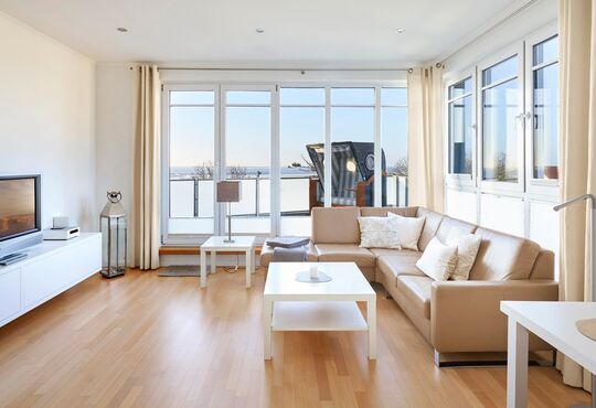 Wir begrüßen Sie im Schloß am Meer", der exklusiven Wohnanlage direkt am Wyker-Südstrand gelegen. Ihre Wohnung liegt im Staffelgeschoss hinter der historischen Fassade, welche beim Neubau erhalten wurde. Hier haben Sie eine Dachterrasse nach Süden gelegen ganz für sich allein und einen Blick auf die Nordsee und die Halligen. Dieser einzigartige Panoramablick ist unvergesslich. In nur wenigen Schritten befinden Sie sich auf der Promenade, die Sie ins Herz von Wyk führt. Hier laden Geschäfte zum Bummeln ein, Cafes und Restaurants verwöhnen Sie mit kulinarischen Köstlichkeiten."