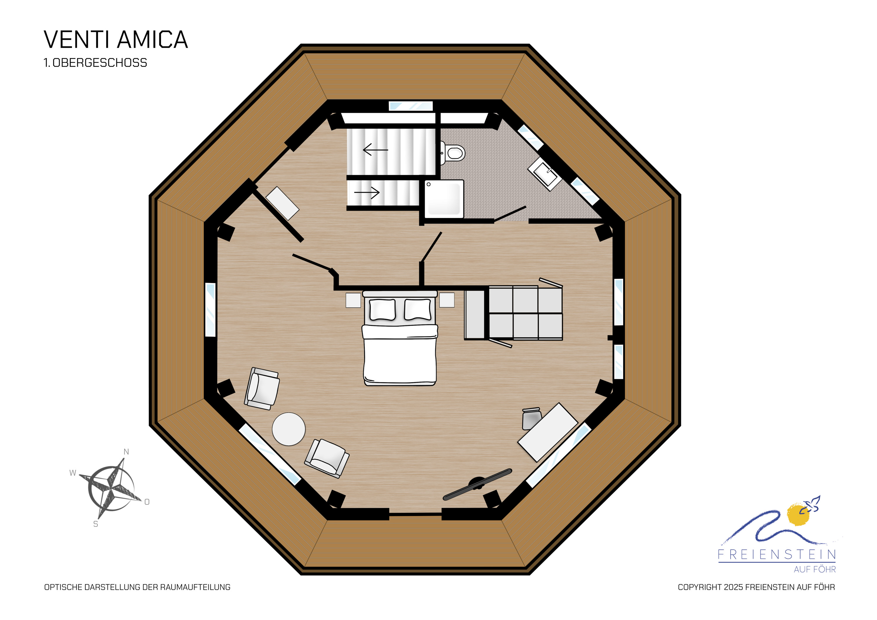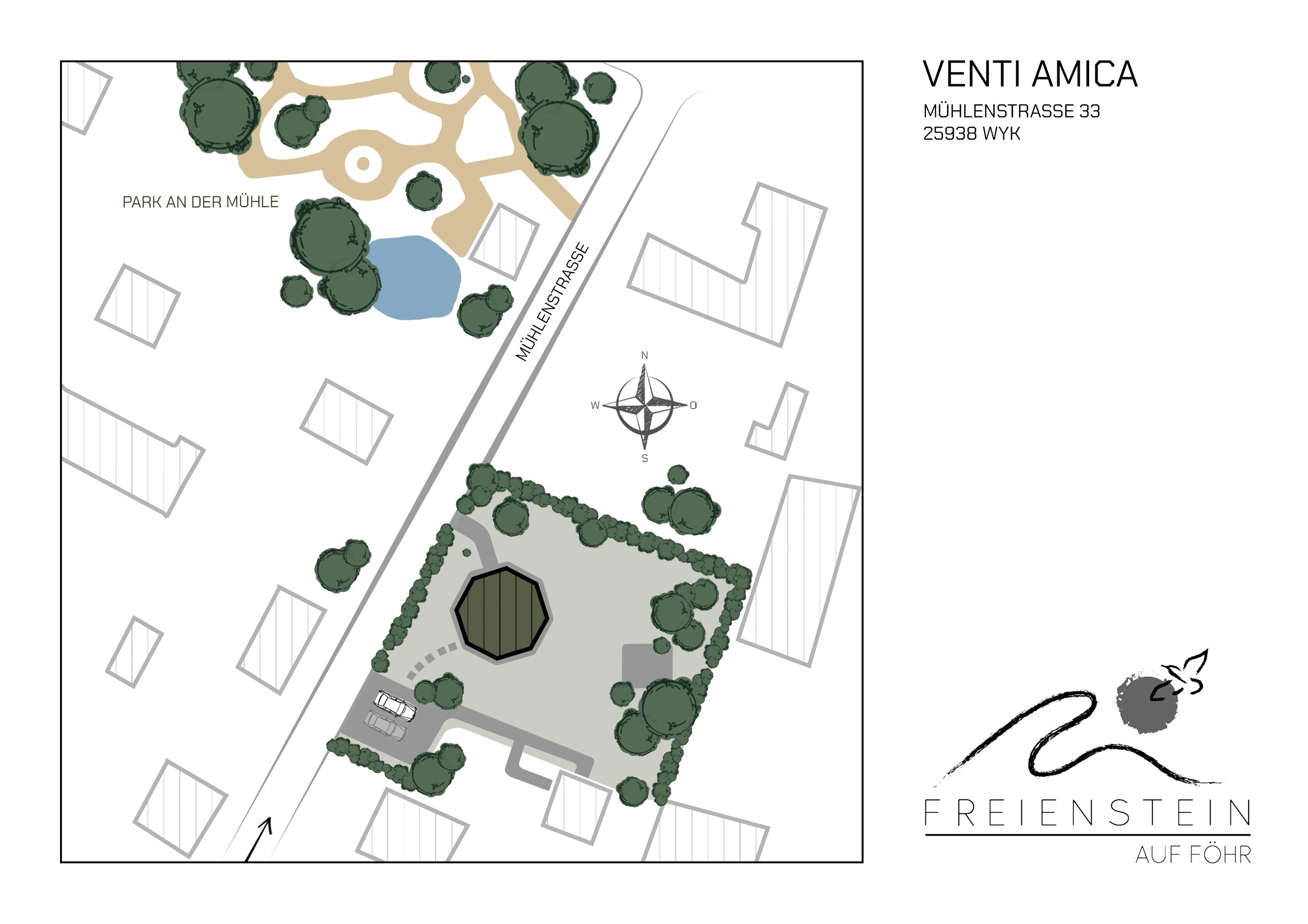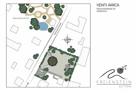Die historische Mühle Venti Amica (lat. „Freundin des Windes“) aus dem Jahre 1879 ist ein Wahrzeichen von Föhr und befindet sich in der Mühlenstrasse in Wyk - ruhig und zentral. Sie hat eine wechselvolle Geschichte in den vergangenen Zeiten erlebt. Wohnte einst die Föhrer Dichterin Stine Andresen dort, befindet sich die Mühle heute in Privatbesitz. Der alte Mühlstein liegt noch sehr imposant im Vorgarten der Mühle und läßt erahnen, welch schwere Arbeiten früher dort verrichtet wurden.